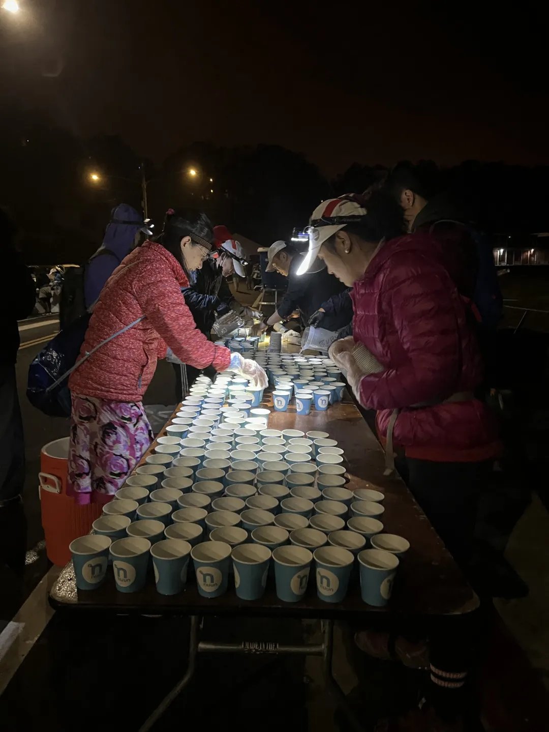 相信谷爱凌应该没来我们水站拿过水喝。但每次一起跑,就过来连续喝个三、四杯的跑者也不乏其人,也算是件趣事。